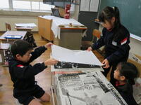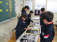 2年生は、グループで協力して版画を刷る作業をしていました。インクをぬった板の上に慎重に紙を置き、丁寧に作品づくりを進めることができました。