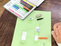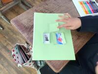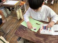 図画工作の学習でカッターナイフを使いました。はさみ以外の刃物を学校で使うのは初めてだったので、どのように動かすのか、どの部分が危ないところなのかを真剣に聞いていました。
