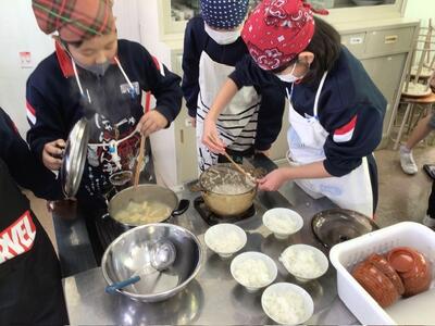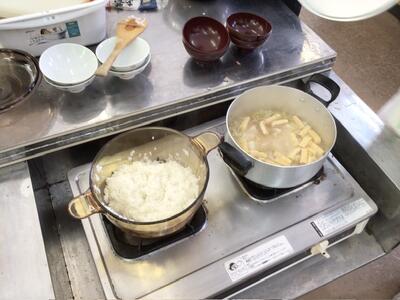 5年生になって2度目の調理実習をしました。今回はご飯とみそ汁です。班で協力して調理したご飯とみそ汁を食べると、「おいしい!」「ご飯があまい!」「ちょっと焦げた」と笑顔で話していました。