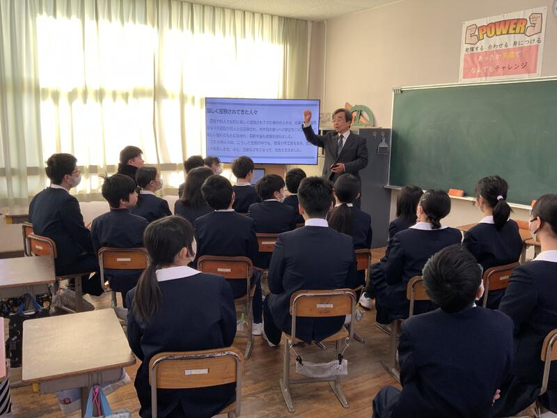 講師の先生に来ていただき、歴史上、百姓や町人とは別に厳しい差別をされてきた人々についてお話をお聞きしました。