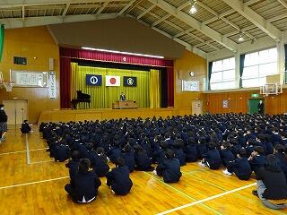 元気よく校歌を歌い、校長先生の話を聞きました。