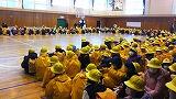 元気よく校歌を歌い、校長先生の話を聞きました。
