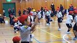 同じフロアで跳ぶ5年生をお手本に、1年生でも難しい跳び方に挑戦