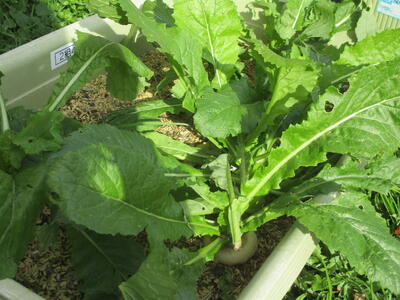 4年生が育てている古田苅かぶら、美しい白い顔をそっと見せてくれています。寒さにも打ち勝つ生命力を感じますね。