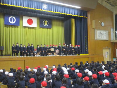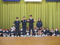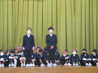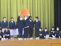 生活科、総合的な学習の時間、での学びを他学年の児童や地域の方々と交流する「にこにこアカデミー」のオープニングのリハーサルを行いました。当日は各学年の代表児童が、ステージで、自分たちのコーナーのひとことPRをします。