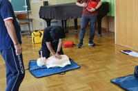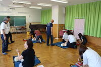 「消防署」では、救急車、消防車の中の様子を見学させてもらったり、消火ホースを使って消火体験もさせてもらいました。ホースの重さや水の勢いの強さを体感し、人々の安全を守る人の強さを知りました。