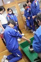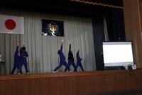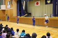 各学年の代表者4名がなわとび名人として様々な、なわとびの技を披露してくれました。なわとび名人は二重跳び、交差二重跳びや、さらに三重跳びなど、高難易度の技を上手に跳んでいました。