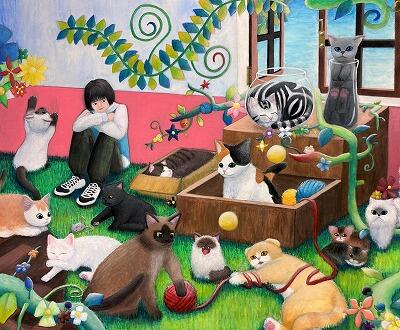 【銀賞(審査員賞)】2年・田前琳「平和に暮らす猫たち」