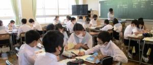 みんなの考えを聞き、自分の考えと比べて、学習を進めていました。