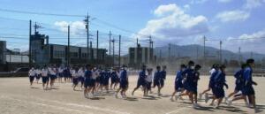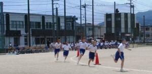 体育の授業で上達したバトンパスや学級の団結を発揮する場。