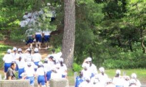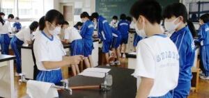 先生の話を聞いて、慎重にガスバーナーに火をつけていました。