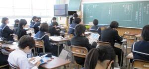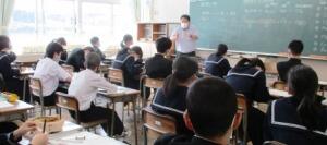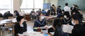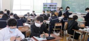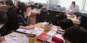 先生の話を聞いて、資料を見て、学習を進めていました。