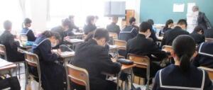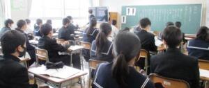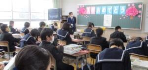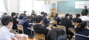 式後の学活では、中学校の教科書を手にし、先生の話を聞いていました。