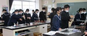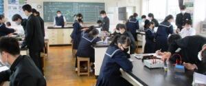 3年生の理科は、水溶液に電気を流すと…という実験。
