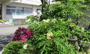 生徒玄関前のナナカマドも白いきれいな花をつけました。