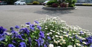 心和やかに登校できるように、花たちも待っています。