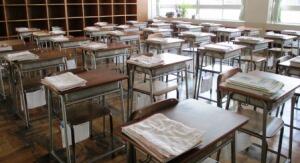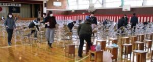 始業式は教室で放送によって。入学式は椅子の間隔を広げて短い時間で実施。