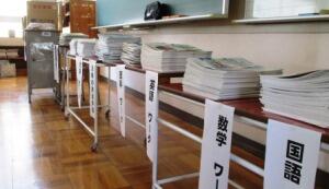 静かな教室には、3月の臨時休業中に取り組んだ生徒達の課題が集められています。