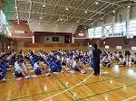 校区内の小学6年生が松陵中学校に集まり、小小・小中連携交流授業を行いました。体育館に集まった小学生は、小学校の先生によるアイスブレイクで、学校の垣根を超えて楽しそうに活動していました。続く中学生との交流では、松陵中学校で行っているコミュニケーション力と自己肯定感を育むための「STタイム」に取り組んでもらいました。海か山、夏か冬どちらが好きかといった二択に、なぜそちらを選んだかという理由をつけて話すという活動でしたが、はじめは緊張した様子だった6年生も、中学生と話すうちに楽しそうな表情も見ることができました。最後には中学生の部活動を見学してもらいました。みなさんが中学校に入学してくる日を楽しみに待っています!