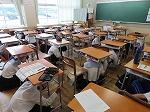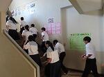 本日午後、地震と津波を想定した避難訓練を実施しました。最初の地震発生の放送で素早く机の下に身を隠して静かに待機し、次の大津波警報が発令されたという放送で生徒職員が南、北校舎の4階にへ垂直避難を行いました。身を守って次の指示を待つ間も避難中、避難後に待機する時間も静かに落ち着いて行動することができていました。「もしも」のときに備えて、緊張感を持って訓練に臨めていました。