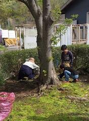 お父さんと一緒に姉弟の小学生が作業に取り組んでいました。