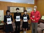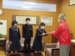 観光ボランティアつるが様より、敦賀の歴史、名勝、ゆかりの人物などについてまとめた冊子「みなと・つるが・いまむかし」を寄贈していただきました。それぞれの学年で修学旅行やふるさと学習などに向けて、総合の時間などで敦賀についての学習を進めています。生徒会長からは「来年の春に開通する新幹線で敦賀を訪れた人たちに、私たち若い世代がふるさと敦賀の素晴らしさを伝えていけるように頑張りたいと思います。」とお礼の言葉がありました。各学年・学級で有効活用していきましょう。