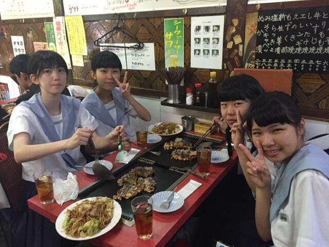昼食は、多くのクラスで「もんじゃ焼き」を食べています。
