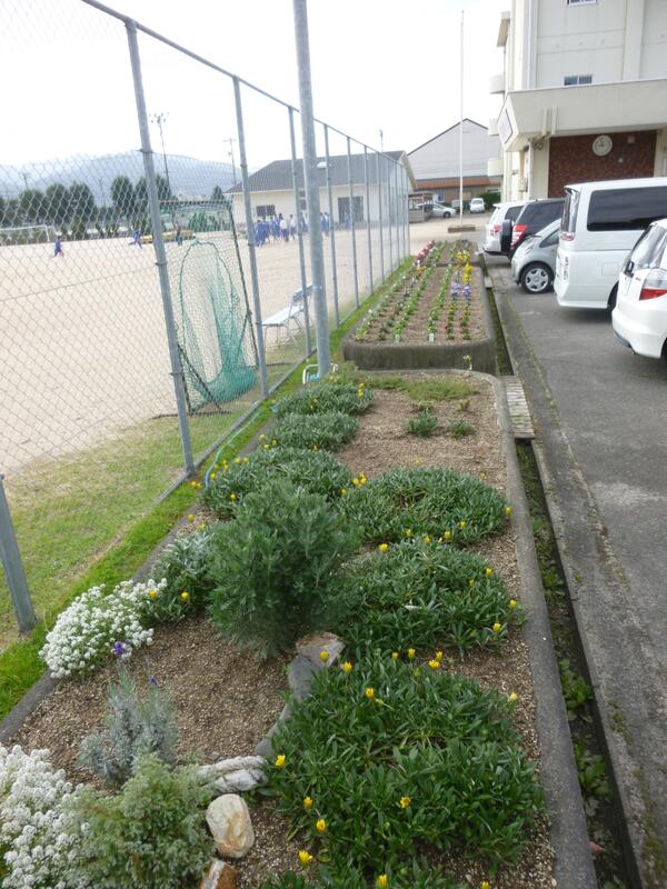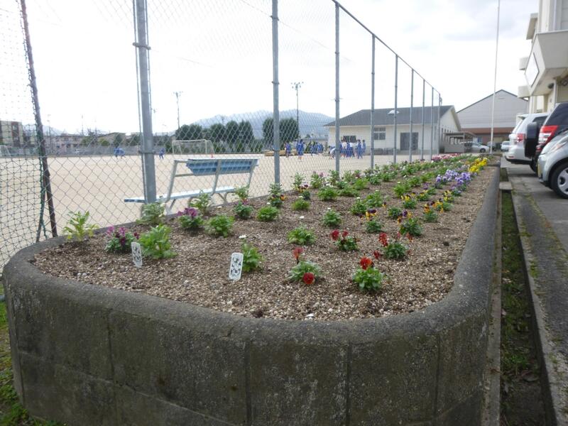 先日、緑化委員会、担当の先生、用務員さんを中心に苗や球根を植える作業が行われました。