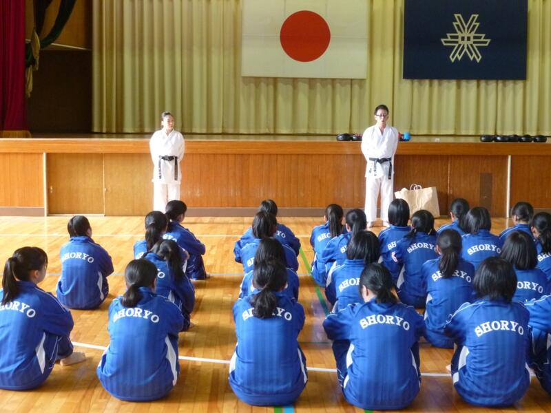 ほとんどの生徒は今まで空手をしたことがないだけに、戸惑いながらも、終始和やかな雰囲気での稽古になりました。