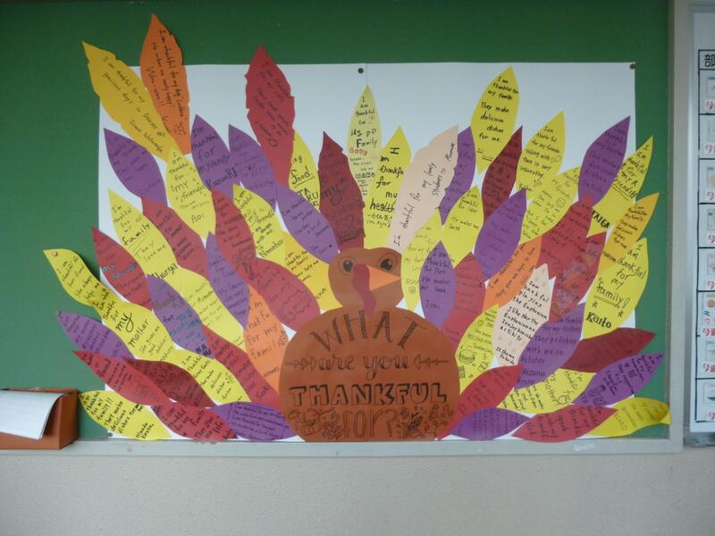 ここには、ALT(外国語指導助手)の先生作成の掲示物が貼られています。