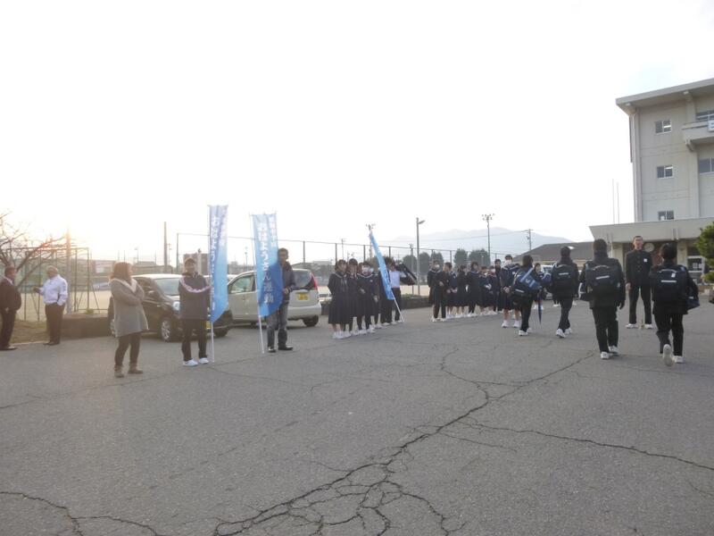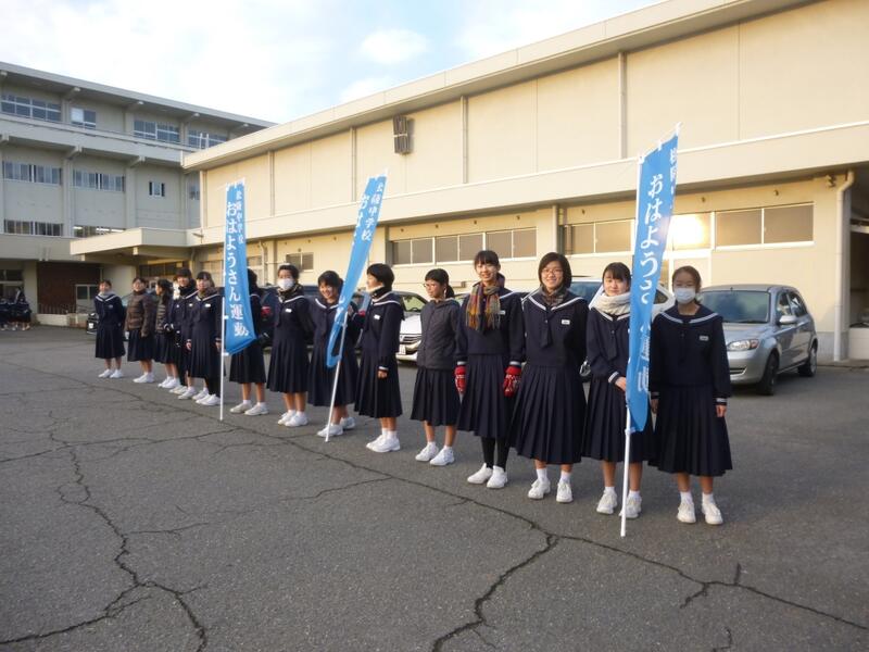 寒い中、PTAの皆様によるあいさつ運動をしていただきました。