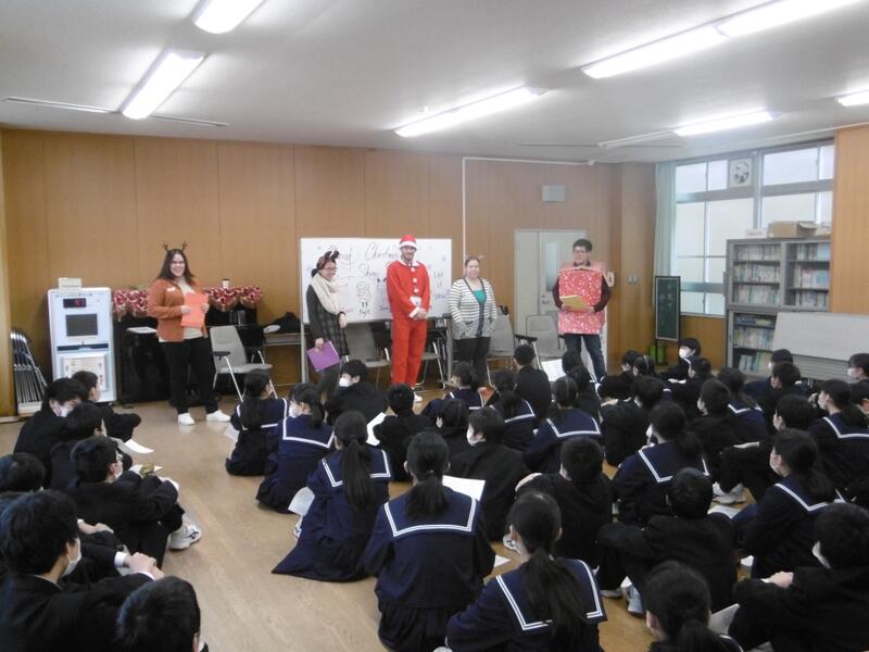 「PPAP」や「赤鼻のトナカイ」など、お馴染みの曲もあり、中には一緒に口ずさむ生徒もいて、楽しいひとときを過ごすことができました。