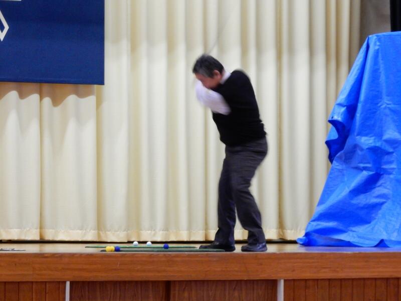 途中、ゴルフ歴数十年の校長先生とT先生もスイングを披露しました。