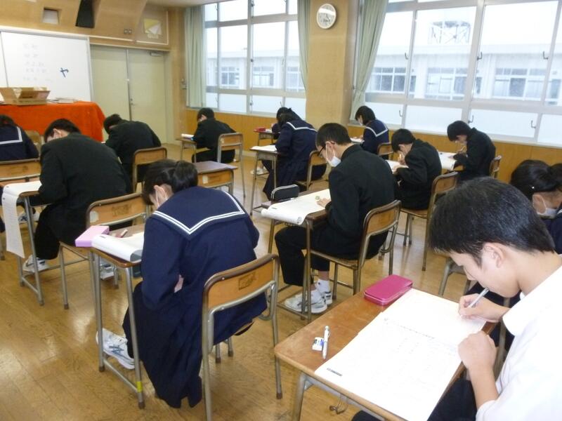 3年間のまとめとして、また、県立試験制の受験生にとっては、そのリハーサルとして、テストに臨みます。