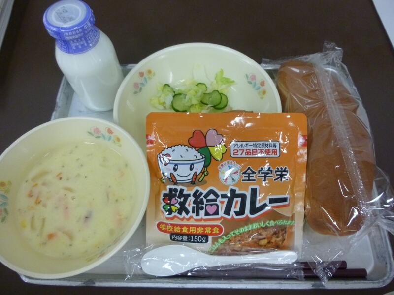なお、今日の給食で、非常食(カレーのレトルト食品)を食べました。