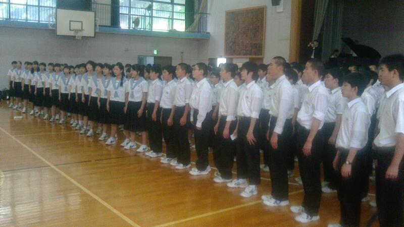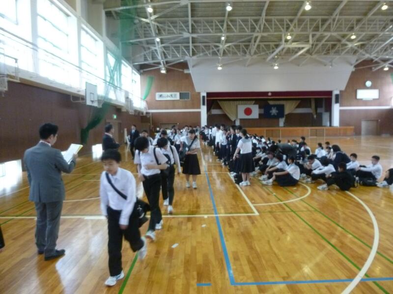 今回は、地震・津波を想定してということで、緊急放送の後、机の下にもぐり、その後、校舎の最上階に避難しました。