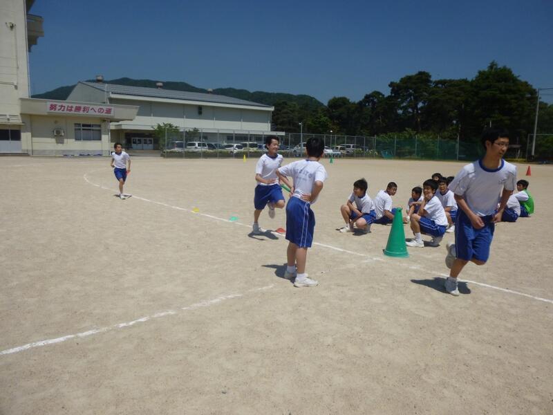 体育の授業では、種目の一つである「全員リレー」の練習に時間をかけています。