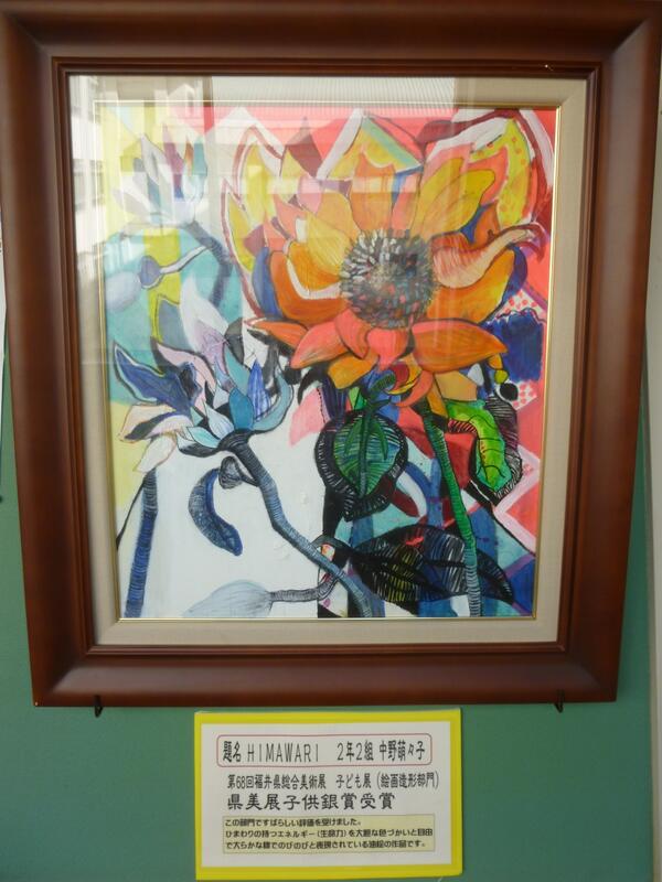 この写真は、現在、職員室前に展示してある生徒作品です。