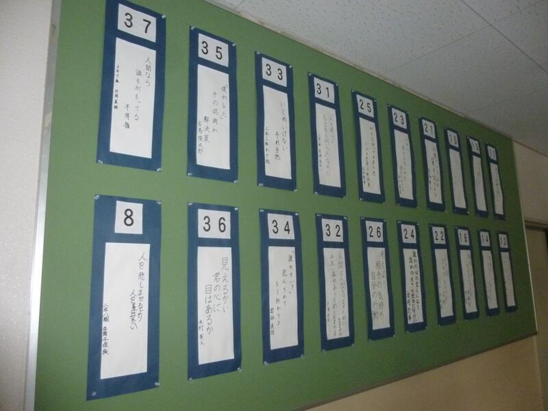 その中から各クラス代表作品を一つずつ選出して、生徒玄関前に掲示してあります。