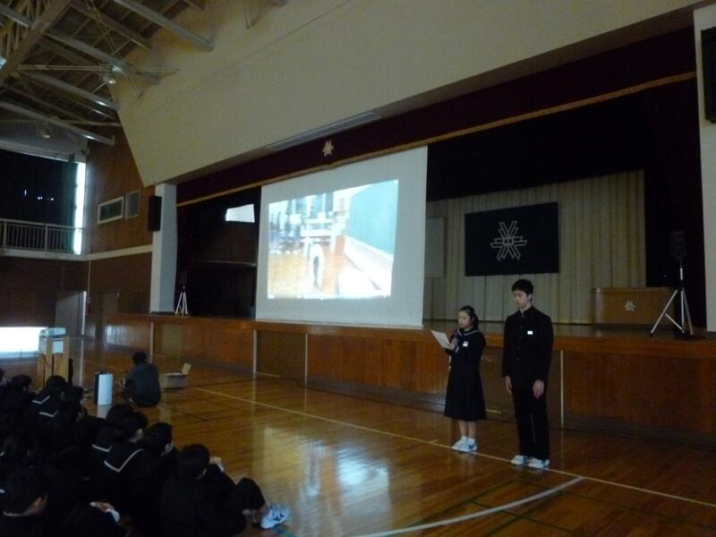 内容は、各種大会・コンクールなどでの表彰、校長先生からのお話、美化委員会からの清掃に関する提案でした。