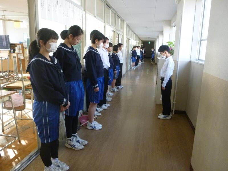 班毎に廊下に整列して、今日の清掃をイメージします。
