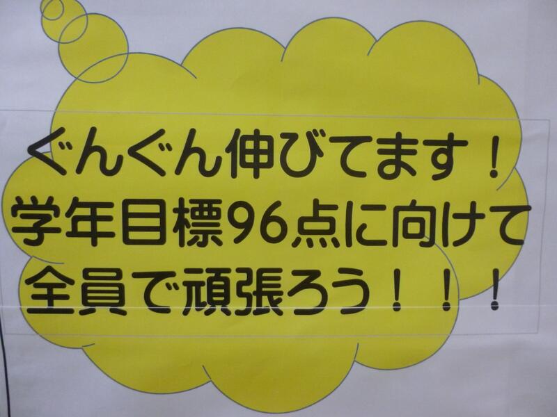 学年の目標点数は1年生が96点、2年生が94点となっています。