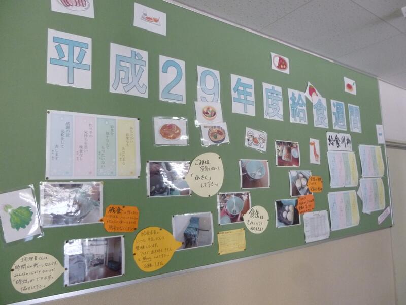 今、生徒玄関の掲示板には、その給食週間に関する内容が掲示されています。