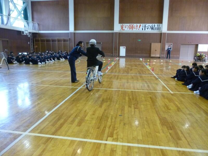 さらには、代表の生徒が自転車に乗って、正しい乗り方を全員で確認もしました。