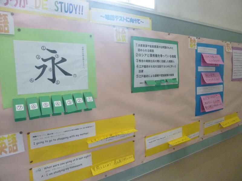 さらには学年の掲示板などにも、確認テスト対策の内容が掲示されるようになってきました。