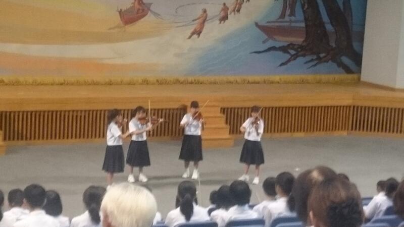本校の吹奏楽部弦楽パート8名の生徒は、プログラムの1番目に登場。