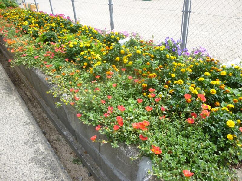 夏休みに入ってからの緑化委員と担当の教員、用務員による水やりの成果もあってか、日に日に色鮮やかさが増しているように感じられます。