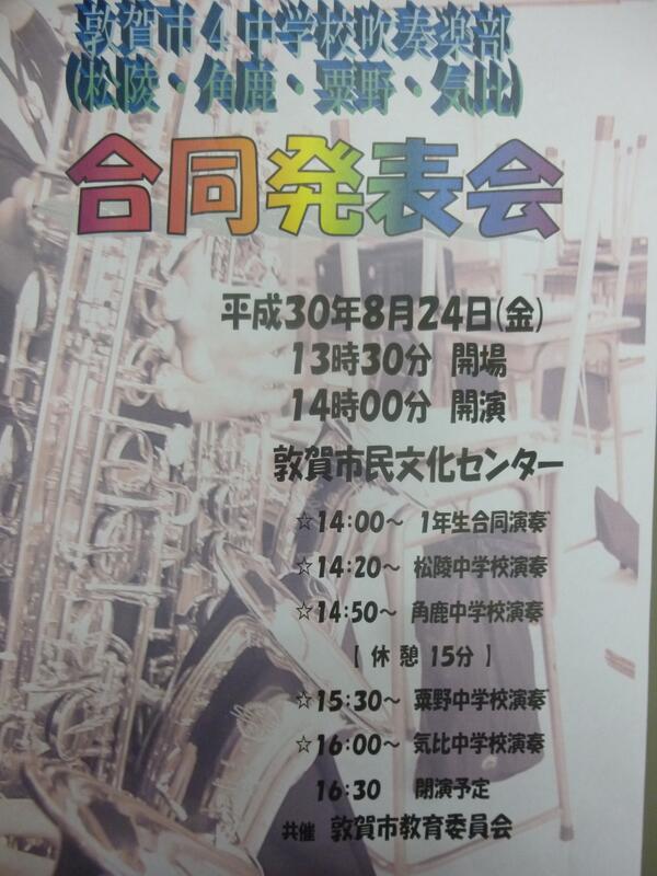 その後、松陵中、角鹿中、粟野中、気比中の順に演奏があります。
