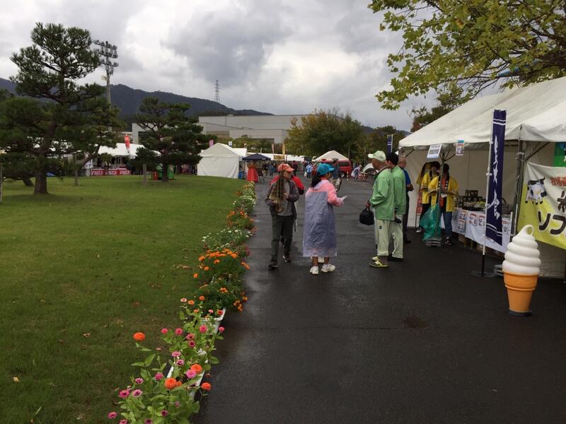 運動公園で、国体の観戦・応援に来られている方に、敦賀市のパンフレットと市S連で作成した手作りパンフレットを配布しました。