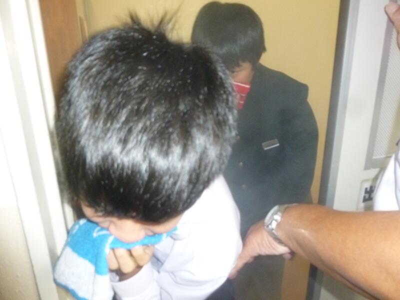 実際の煙ではないものの、煙同様にほとんど前が見えない状態であるため、生徒の恐怖心は徐々に大きくなっていったようです。